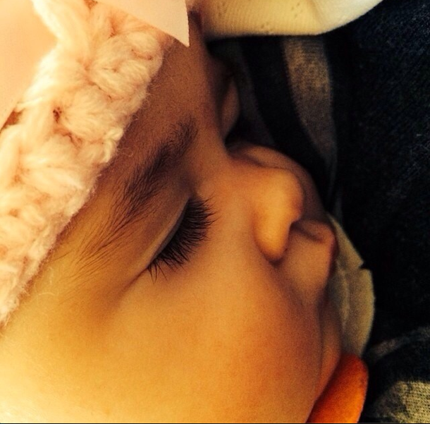 Beautiful little Ella Brave sleeping. Look at those beautiful eyelashes! 🙂