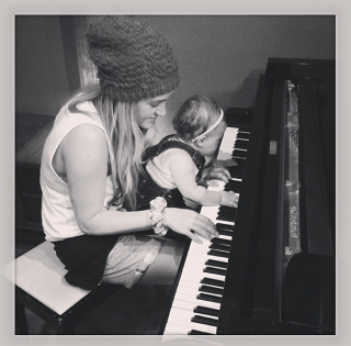Britt Nicole has been hard at work recording and writing for her new album. Today she posted a picture of her & Ella playing the piano in the studio.