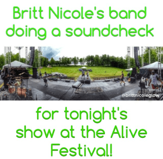 Britt Nicole & her band will be performing tonight at the Alive Festival in Ohio. She will perform at 8:30 p.m. on the Amphitheater Main Stage!ย