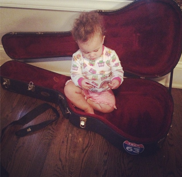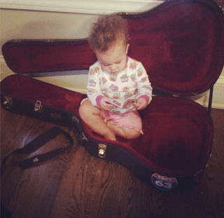 “Walk over from the kitchen and Ella’s in my guitar case reading, ha ha! 🙂 #lovemorningswithella” – Britt Nicole