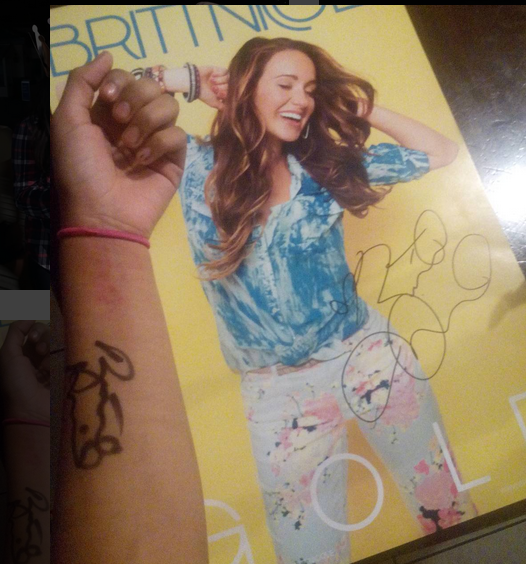“Thanks for sing my hand….ik you saw my scars….idk how you feel I felt happy today because I got to see you I want to cry in front of you…I can believe you knows me you said my name when you where sing that made me cry I was speechless I was like omg….. and that special song for me I love you britt @itsbrittnicole” – @his.precious.cristal