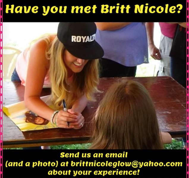 Have you met Britt Nicole? Send us an e-mail about your experience, and we will post it on our Meet and Greet page. 🙂