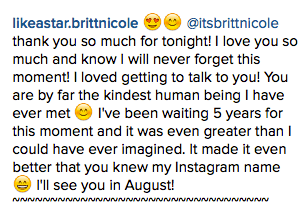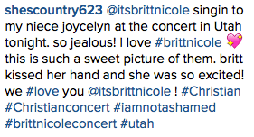 It’s also been one year since Britt Nicole posted the top right photo on her Facebook and Twitter! I was SO SHOCKED that she had hand-picked presents to send to me… and not just any presents… she had done some research to find out what I like! Hence the chalkboard verse decor, horse book, and journal! Britt Nicole, you are the absolute SWEETEST human being that I know! Thank you for looking like love and for having such a compassionate and generous heart! I am praying for you as you continue to tour and spread God’s love!
