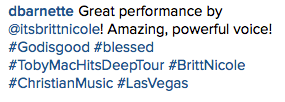 Britt Nicole, Toby Mac, and lots of other were AMAZING tonight🤘🏽 pic.twitter.com/S2LLilmdVO— Katherine (@katherinecw1) February 28, 2016