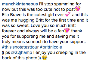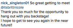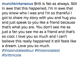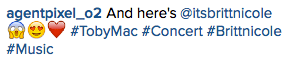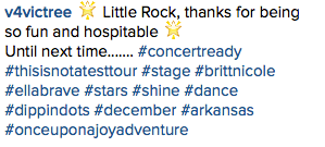 On November 22nd, Britt Nicole and the rest of the “This is Not a Test” tourmates performed in Jacksonville, FL. Britt Nicole performed a reduced setlist, but fans said that the show was still an amazing event! Check out photos and videos from the night below! π Their next tour stop will be on December 3rd in Duluth, GA.