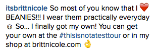 DON’T FORGET! Britt Nicole’s Black Friday weekend merchandise sale is now LIVE on her website! She has uploaded items from her new tour as well as old merch items, all of which you may receive 35% OFF of when using the code THANKS2015 or THANKS15! π This sale will only last through the weekend! We already bought the GOLD sweatshirt and Be the Change bracelet! What did YOU buy? Comment below!