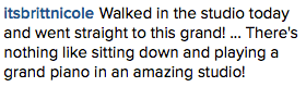 She did say that she has recorded about 60 songs so far for the new record, which isn’t unusual. Artists record a ton of material and then have to narrow it down when the time comes to release the album. She told me that she has a board in her studio where she has listed the songs that she has recorded and the other day her daughter Ella Brave drew all over it. Haha! 🙂