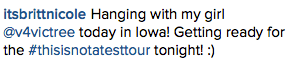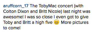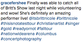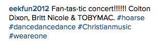 All in all, it was an AMAZING night and I will NEVER forget it! If you haven’t bought your tickets to the “This Is Not a Test” tour, please go and see it soon. It really is worth the money and is such an amazing night of worship! Also, BRITT NICOLE will be there. Need I say more? 🙂