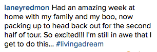She told me that she will be going to L.A. soon to record, write, have meetings, etc. and to pray for her as she will have to be away from her husband and kids. Also, please pray that God will guide her in the process. All in all, our conversation lasted about 40 MINUTES. It was so incredibly amazing! 🙂 I got to meet her tour manager and her bandmate Rob. I also got to see Aaron (her drummer) and Jeff and Laney (her dancers.) The team was playing corn hole backstage! 🙂Â