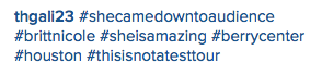 Last night, Britt Nicole performed in Cypress, TX. It was the first of a two night run in Cypress for the “This is Not a Test” tour. Check out some photos and videos from the concert below! We even have a close-up video of Britt Nicole doing the “Watch Me Whip/Nae-Nae” song! 🙂 Stay tuned for tonight’s Houston show!