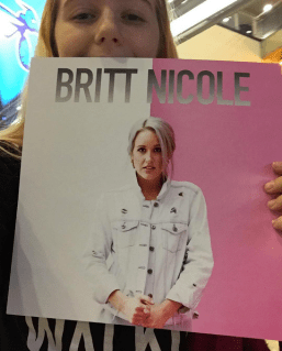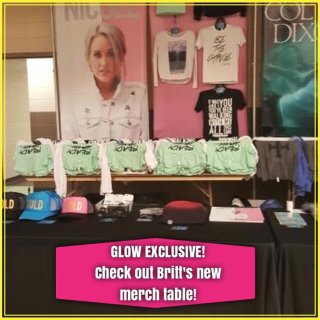 We have a GLOW exclusive for you thanks to our fellow Nicgold Kasey! She volunteered at the concert in Birmingham, AL and was able to send us some exclusive shots of Britt Nicole’s new posters, merchandise, and the beautiful backdrop! I don’t know about you, but I am LOVING the new colors! I am hoping that this will be the color scheme for her upcoming album! I also think that we might see this backdrop or photo somewhere on her new album. What do y’all think? 🙂