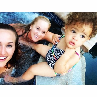 Β “In between all the sessions and meetings, I Got some pool time with my sweet momma and my sweet girl ! π #ellayoursobeautiful”