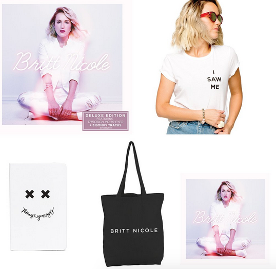 Includes the “Through Your Eyes” tee in white + Britt Nicole tote bag, a journal, autographed poster and the Deluxe Edition CD or Digital album.