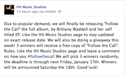 Now they are planning on releasing both a hard copy and a digital copy for fans to order. Get excited! Soon you could have both of Britt Nicole’s cds “Follow the Call” and her self-titled EP “Brittany Waddell”. 😀 Will you buy them? Comment below!