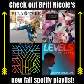 Britt Nicole recently shared her new “Fall Playlist” on Spotify. Check out the songs that she added to her playlist below. Do you have any favorites in common? Let us know! 🙂