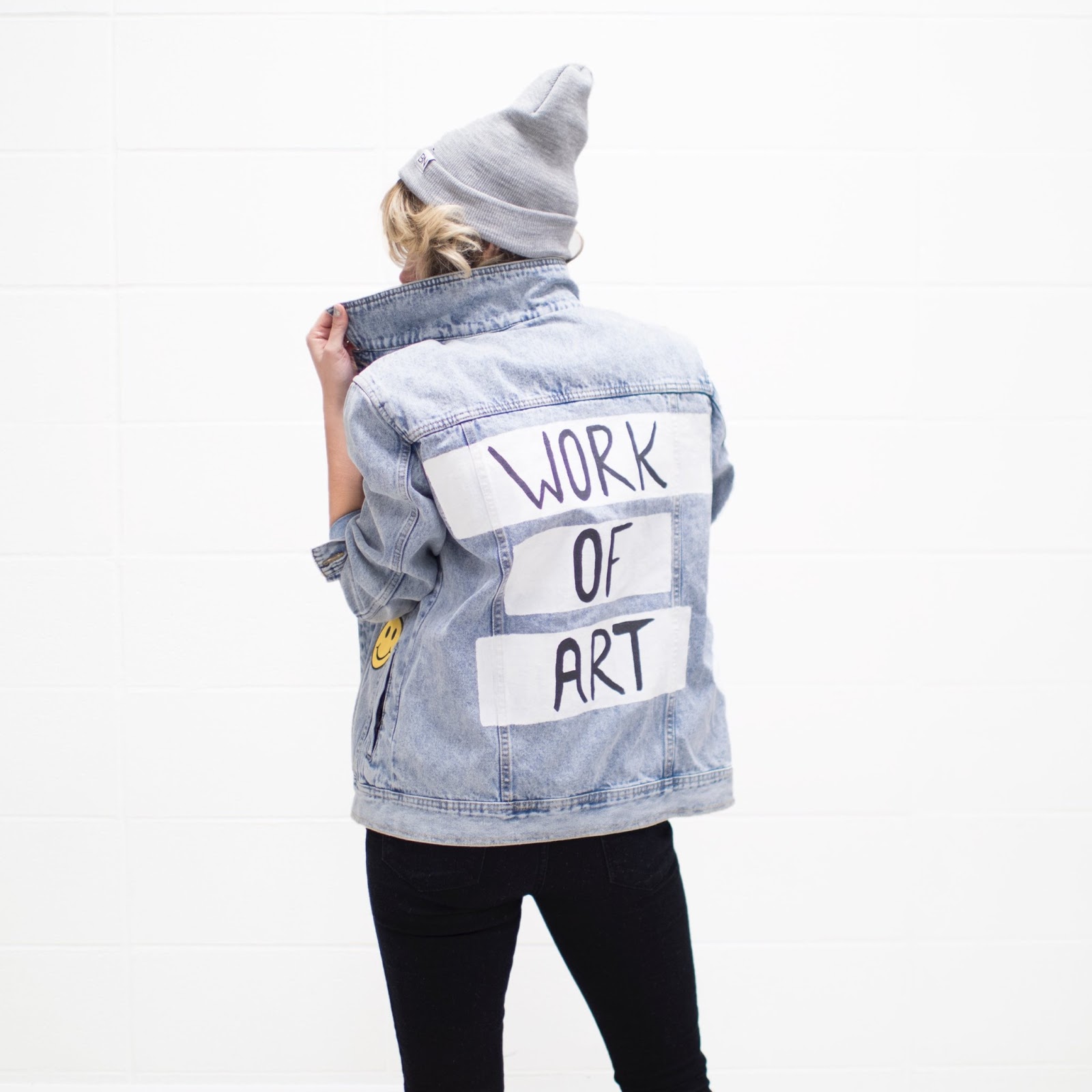 Β PRE-ORDER your very own “Work of Art” jacket! All jackets will ship September 1, just in time for the first breeze of fall! πΒ Every jacket is unique, every jacket is a true “Work of Art.” TheΒ jean jackets vary in color, making every single jacket special in its own way, just like you! The hand painted “Work of Art” logo on the back is a true reminder of who we are, a beautiful masterpiece. You will want to wear your custom jean jacket every day, not only because its cool and classic, but because it reminds you that you truly are a “Work of Art.”Β