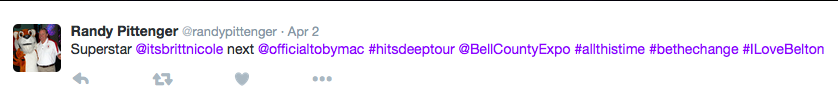 Thank you for spreading your music tonight in San Antonio @itsbrittnicole My family had a blast! #TheChange pic.twitter.com/oWMEE5ZQKoβ ScooteR (@ScooterinOki) April 1, 2016