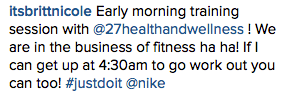 Britt Nicole has been dedicated to getting into shape for her upcoming “This is Not a Test” tour with Toby Mac, Colton Dixon, and HollyN. She has been working out by herself and also getting into shape with the help of her trainer James Free, Jr. Today she had a 4:30 a.m. training session! Although it may look easy, going on tour is actually extremely grueling… especially when you are singing AND dancing! Being in shape is important so that performers can have the right amount of stamina. To Britt we say, “You go, girl!” 🙂